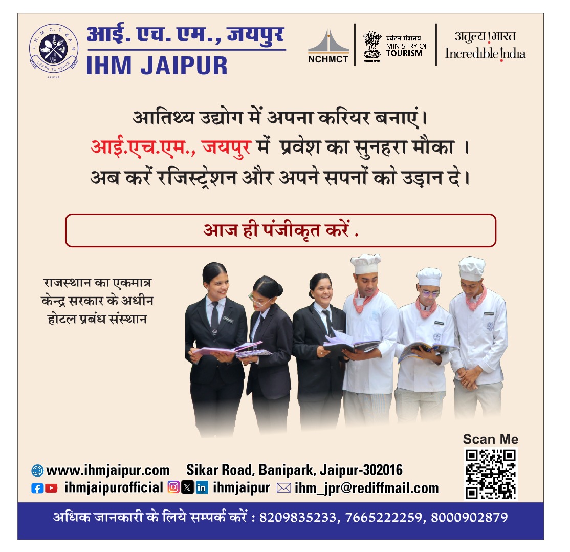 Dear Student,Let me take this opportunity to welcome you all to IHM family, Jaipur. I hereby, congratulate you for choosing the hospitality industry as a career. At IHM Jaipur we shall do our utmost to ensure that you receive the right kind of guidance, advice and counseling which shall enable you to prepare yourself for a progressive career in the hospitality industry.